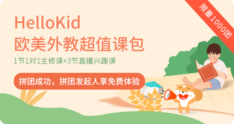 3、拼团失败,均不退还参团费用,团内成员将获得1节HelloKid主修课和3节HelloKid直播兴趣课。